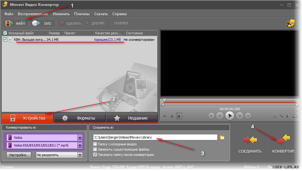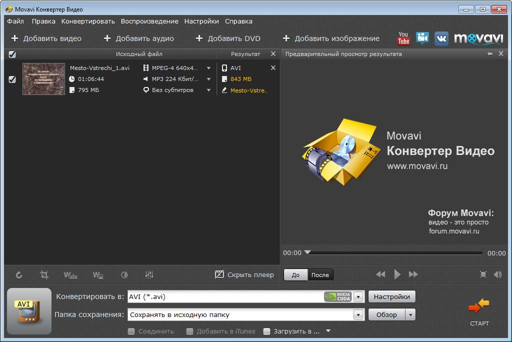 На реальном примере рассмотрим процесс конвертации видео. Помимо стандартной работы с файлами в конвертере Movavi можно конвертировать видео в формате VOB на диске. В примере мы затронем и этот вопрос.