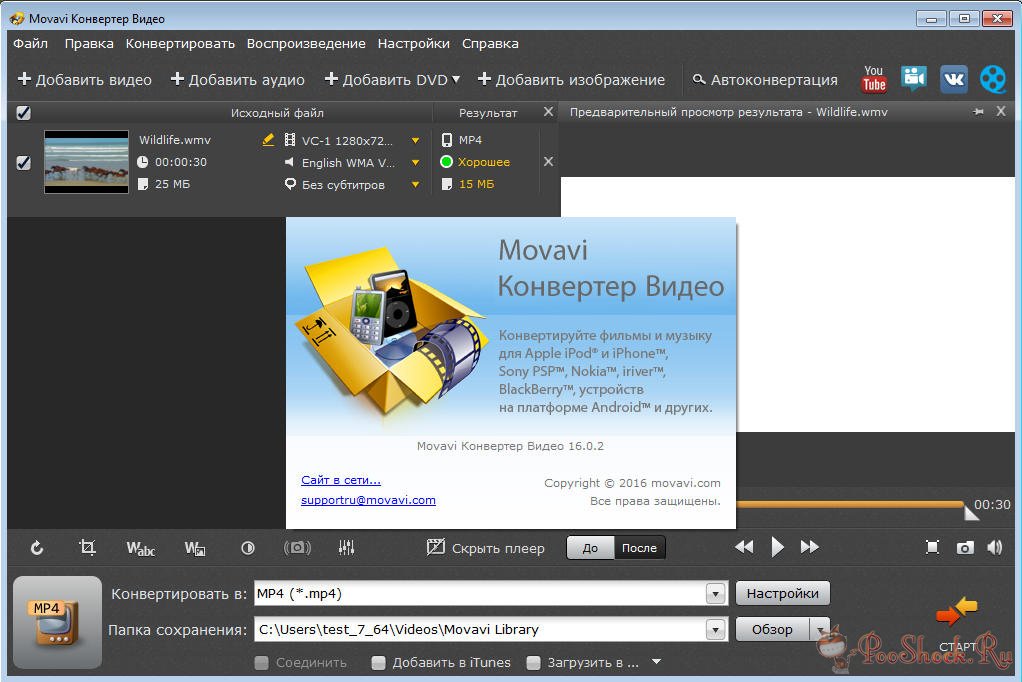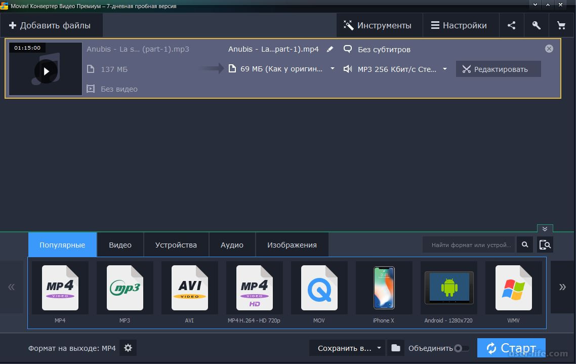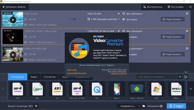 Movavi Video Converter позволяет быстро конвертировать видеофайл в различные форматы отдельно или в пакетном режиме. Используя этот конвертер, вы также можете вырезать, обрезать видео, вращать видео и быстро выбирать тип вывода, например, настраивать устройства, аудио, изображения и так далее.