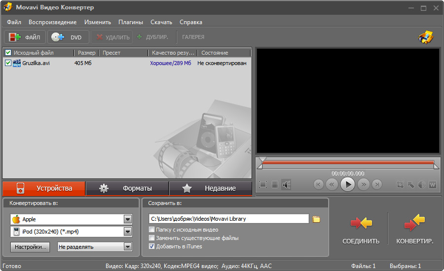 Если же мобильное устройство под рукой, подключите его к компьютеру через USB. Эффект будет тот же – установка правильных параметров аудио, фото и видео. Владельцы техники от Apple будут рады: больше не надо вспоминать, какое видео открывается в стандартном проигрывателе, а какое требует добавить кодеки. Кроме того, перед конвертацией файл можно редактировать: